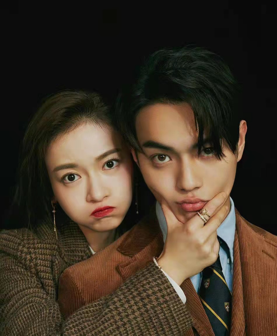 吴谨言从化妆间走到摄影机前,等在那儿的,是她的银幕CP许凯。他慢慢地转过身来,把左手拇指和食指比成了爱心的形状,右手转圈,慢慢收线。吴谨言笑着瞪了他一眼,慢慢地走到他面前,把头轻轻地靠在他的肩膀上,闭上了眼睛。